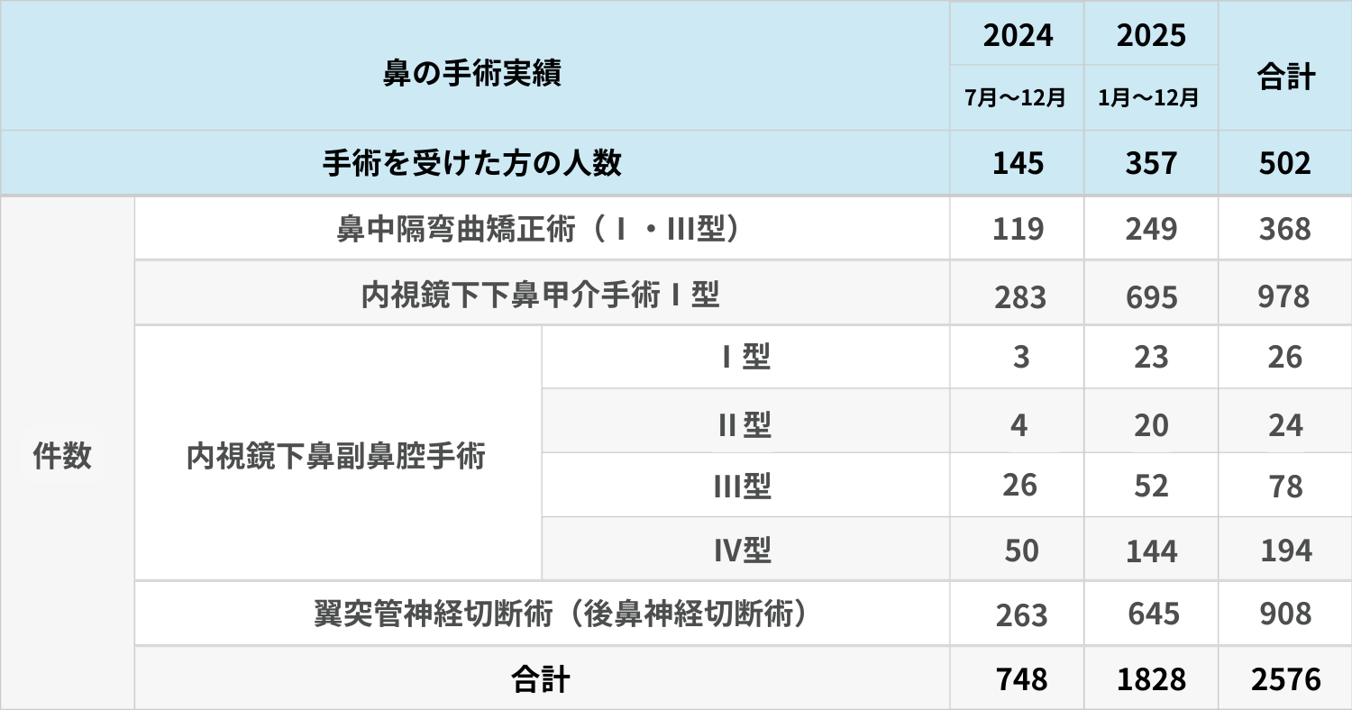 メトロポリタンENTサージクリニック東京では、2024年の開院以来、数多くの手術をおこなっております。